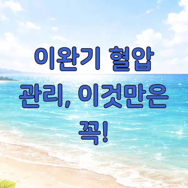 이완기 혈압 낮추는 법, 어렵지 않죠? 오늘부터 하나씩 꾸준히 실천하셔서 건강한 혈압으로 활기찬 일상 보내시길 응원합니다!