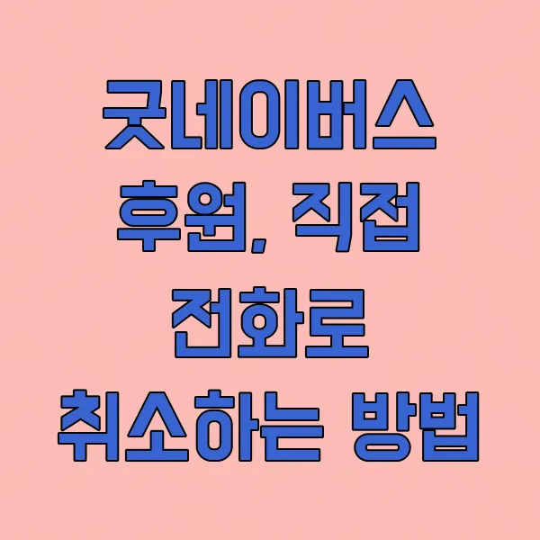 주의할 점: 후원 취소 신청만 하고 자동이체 해지를 하지 않으면, 다음 달에도 요금이 청구될 수 있어요. 꼭 두 가지 절차를 함께 진행하시거나, 굿네이버스 측에 정확히 확인하시는 것이 중요합니다.